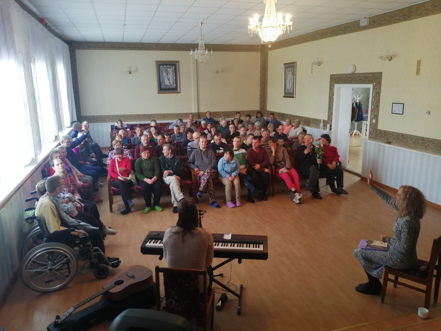Sestdien, 17. septembrī filiālē “Mēmele” viesojās mākslinieces no Jēkabpils – dzejniece Ruta Štelmahere, kā arī mūziķe, dziesmu autore un izpildītāja Alise Kļaviņa. Tikšanās laikā skanēja dzejas lasījumi autores izpildījumā no vairākiem viņas dzejoļu krājumiem. Dzeju brīnišķīgi papildināja Alises dziedātās dziesmas un akustiskās ģitāras un klavierspēle. Jāpiebilst, ka izskanējušās dziesmas bija Alises komponētas un tapušas ar Rutas Štelmheres dzeju. Paldies māksliniecēm par mums dāvāto dzejiski muzikālo baudījumu!