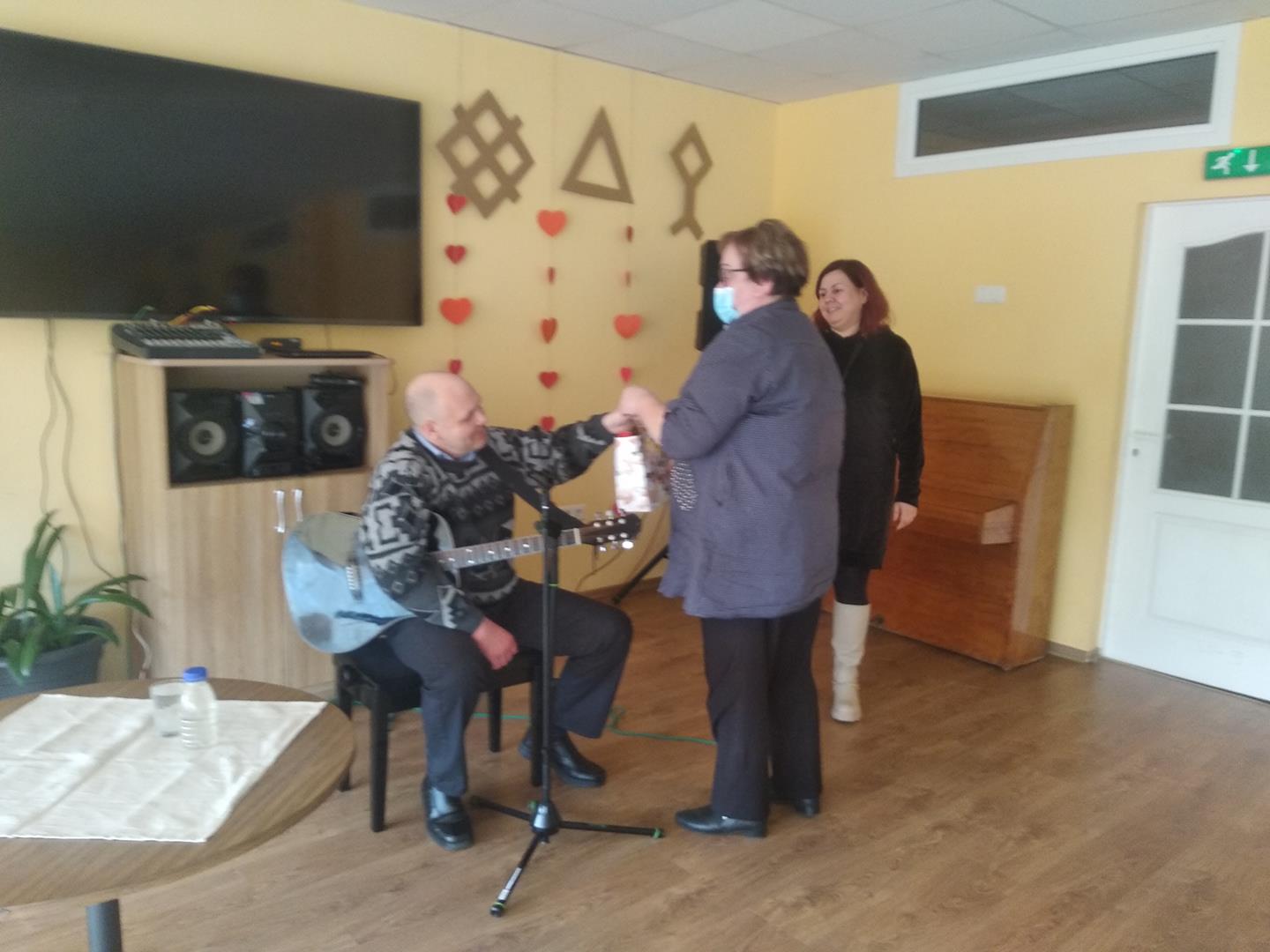 30.03.2022 Filiāles “Kalkūni” zālē klienti klausījās "Šansona dziesmas". Tās dziedāja autors Evalds Cirskis.