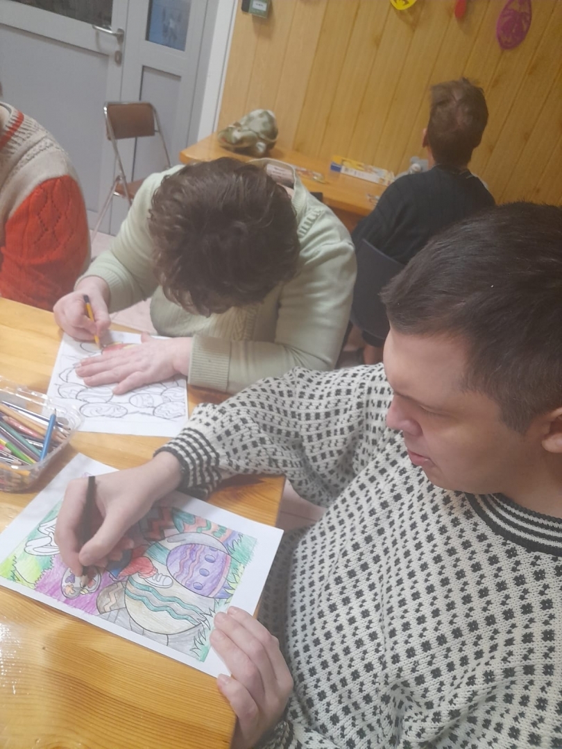 Otrā korpusa klienti cītīgi krāsoja zaķus un olas. Izkrāsotie darbiņi tiks izmantoti telpu dekorēšanai.